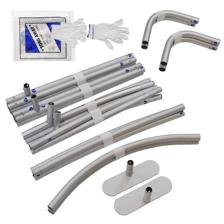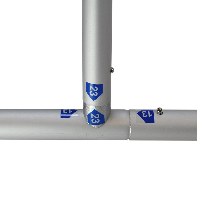 This lightweight aluminum tube frame with a diameter of 32 mm is equipped with a textile fabric with zipper. The systems can be set up in no time and without tools.