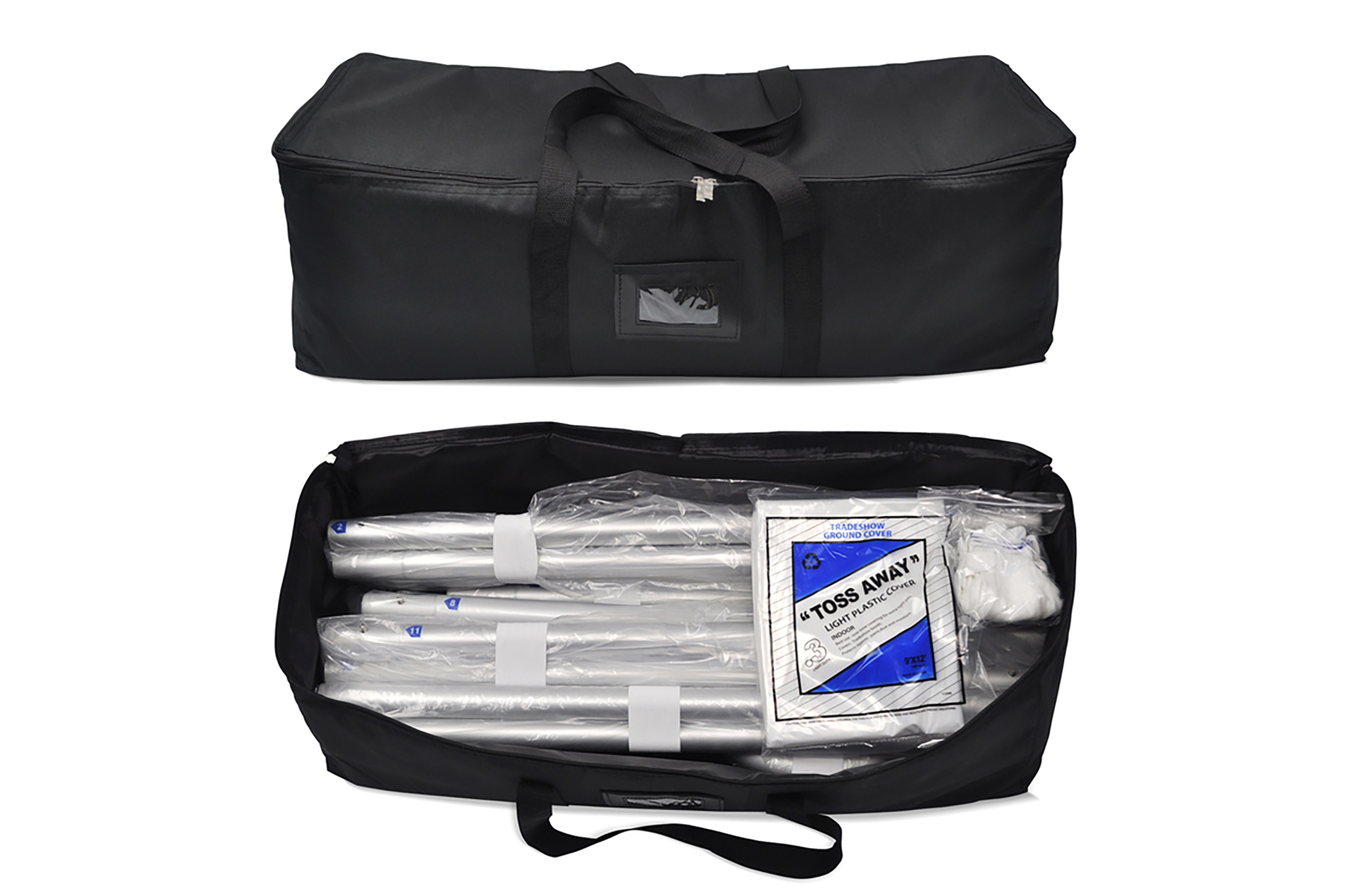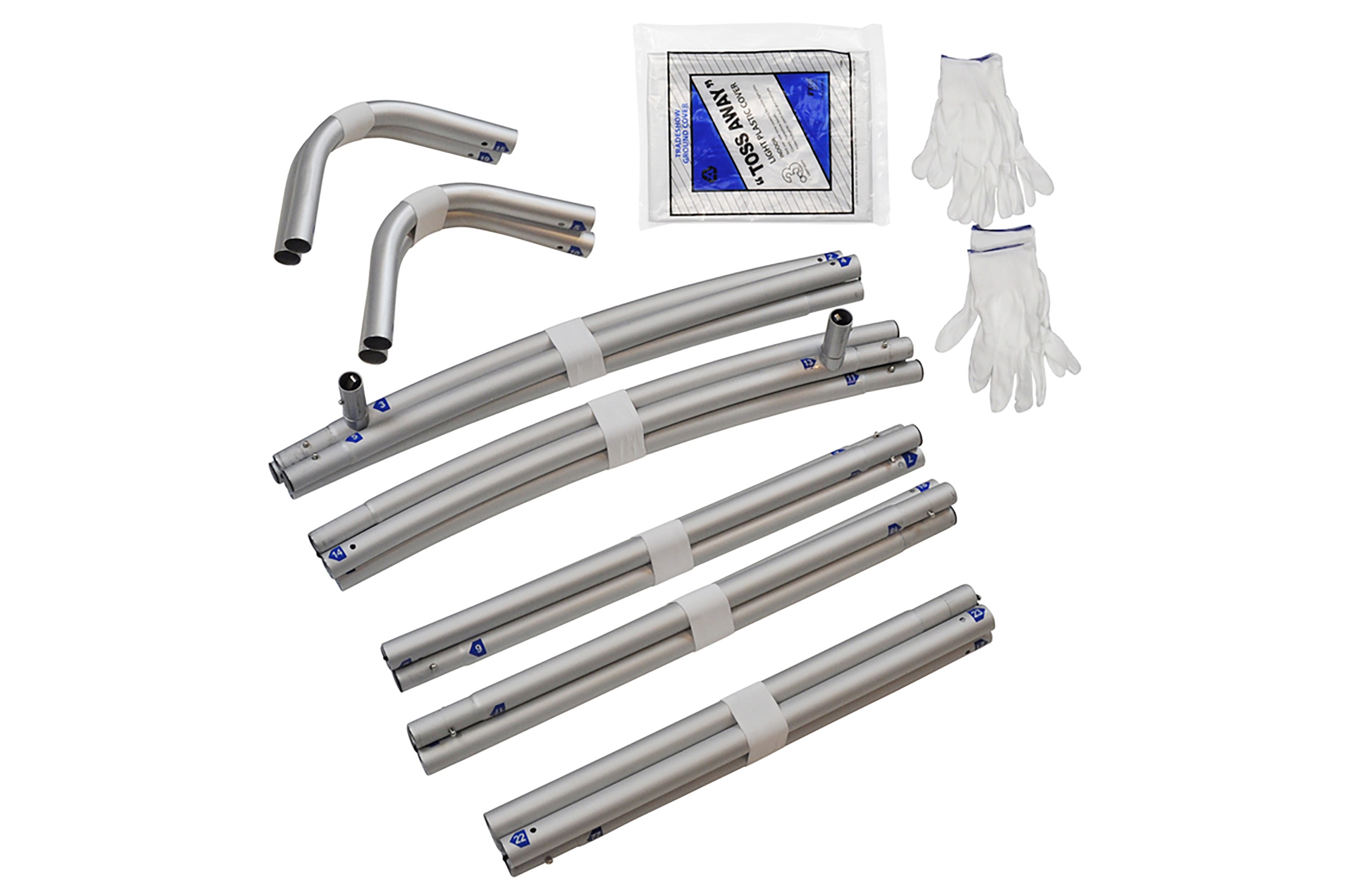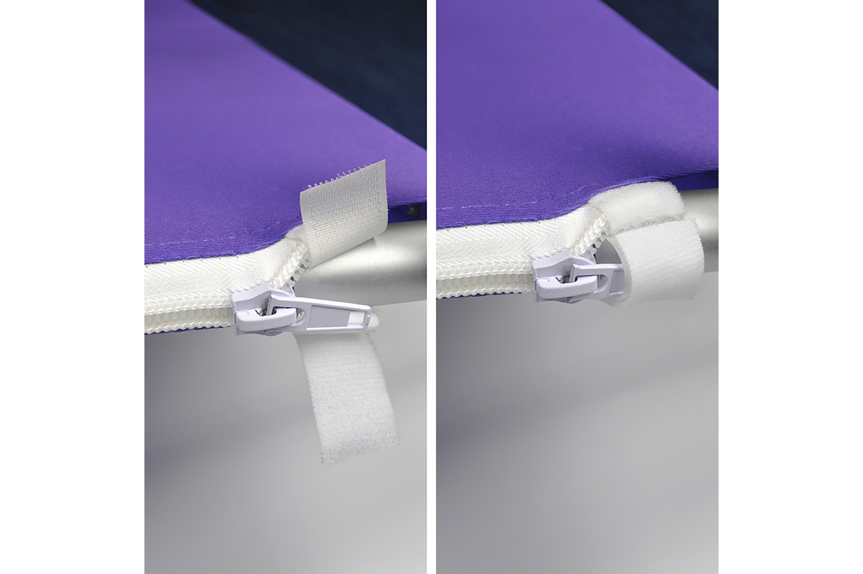 This lightweight aluminum tube frame with a diameter of 32 mm is equipped with a textile fabric with zipper. The systems can be set up in no time and without tools.